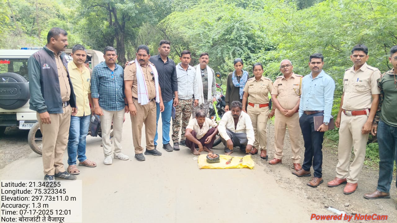 वनविभाग व पोलीस यांच्यासह संयुक्त गस्ती व नाकाबंदी दरम्यान बोरअजंटी ०२ इसम मोटार सायकल वर पिवळ्या गोणीत दोन हरीण काळवीटाचे शिंगे व शिजवलेले मांस घेवून जातांना मिळून आल्याने सदरील इसमांना चौकशी कामी ताब्यात घेऊन घटनास्थळी वन्यप्राण्यांच्या शिकार करुन काळवीटाचे शिंगे २ नग व शिजवलेले मांस (मटन) अंदाजे २ कि.ग्रॅ व मोटार सायकल स्प्लेंडर प्लस कंपनीची क्र. MP-१०/NC-४८५७ व दोन मोबाईल फोन जप्त करण्यात आले. जप्त करण्यात आले. सदर ०२ आरोपी इसम यांना ताब्यात घेऊन त्यांची कसून चौकशी केली असता त्यांनी नाव वांग या पुसल्या बारेला उ. वय ४८ रा टाक्यापाणी त्ता.वरला जि. बडवाणी, ह.मु बोरखेडा ता.धरणगांव व धुरसिंग वलका बारेला उ.व.४५ रा आत्मज बधुरिया-७, ग्राम वरुड जि. खरगोन ह. मु. पळासखेडा यांना अटक करण्यांत आली.