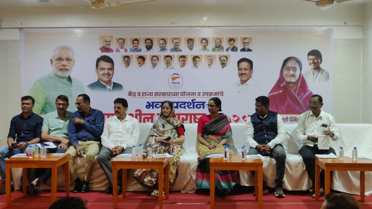 प्रदर्शनाबाबत माहिती देताना खासदार स्मिताताई वाघ पुढे म्हणाल्या की, या प्रदर्शनात केंद्र – राज्यातील विविध विभागांच्या वतीने चालविणाऱ्या जाणाऱ्या जनकल्याणकारी योजनांबाबत माहिती देणारे स्टॉल्स असणार आहेत. यामध्ये कृषी आणि ग्रामीण विकास, जिऑलॉजिकल सव्र्व्हे ऑफ इंडिया, विज्ञान आणि तंत्रज्ञान, पर्यावरण, जैव सुरक्षा, आयुष, होमियोपॅथी अनुसंधान परिषद, केंद्रीय मत्स पालन विभाग, महाऊर्जा, भारतीय मानक ब्युरो, आयसीएमआर, केंद्रीय प्रदूषण नियंत्रण मंडळ, नॅशनल फर्लीलायजर लिमिटेड, भारतीय लघु उद्योग विकास बँक, इंडियन फार्मस फर्टिलायजर को आपरेटीव्ह लिमीटेड, गुजरात इफॉर्मेटिक्स लिमीटेड, केंद्रीय सार्वजनिक बांधकाम विभाग, न्यू इंडिया इन्शुरन्स, केंद्रीय गोदाम निगम, भारतीय समुद्री विश्वविद्यालय, केंद्रीय पेट्रोकेमिकल्स, भारतीय चहा बोर्ड, कृषी अधिकार सुरक्षा प्राधिकरण, भारतीय विमान प्राधिकरण, राष्ट्रीय अनुसूचित जाती वित्त व विकास मंडळ, कर्नाटक सोप्स एंड डिटर्जेंटस् लिमीटेड, महाराष्ट्र बांबू, ओडीसा बांबू, आधार, जळगाव महापालिका, जळगाव जिल्हा परिषद, जळगाव जिल्हा प्रशासन, कवियत्री बहिणाबाई चौधरी उत्तर महाराष्ट्र विद्यापीठ-इनक्युबेशन सेंटर अशा विविध खात्यांचे, विभागांचे व संस्थांचे स्टॉल्स असणार आहेत.