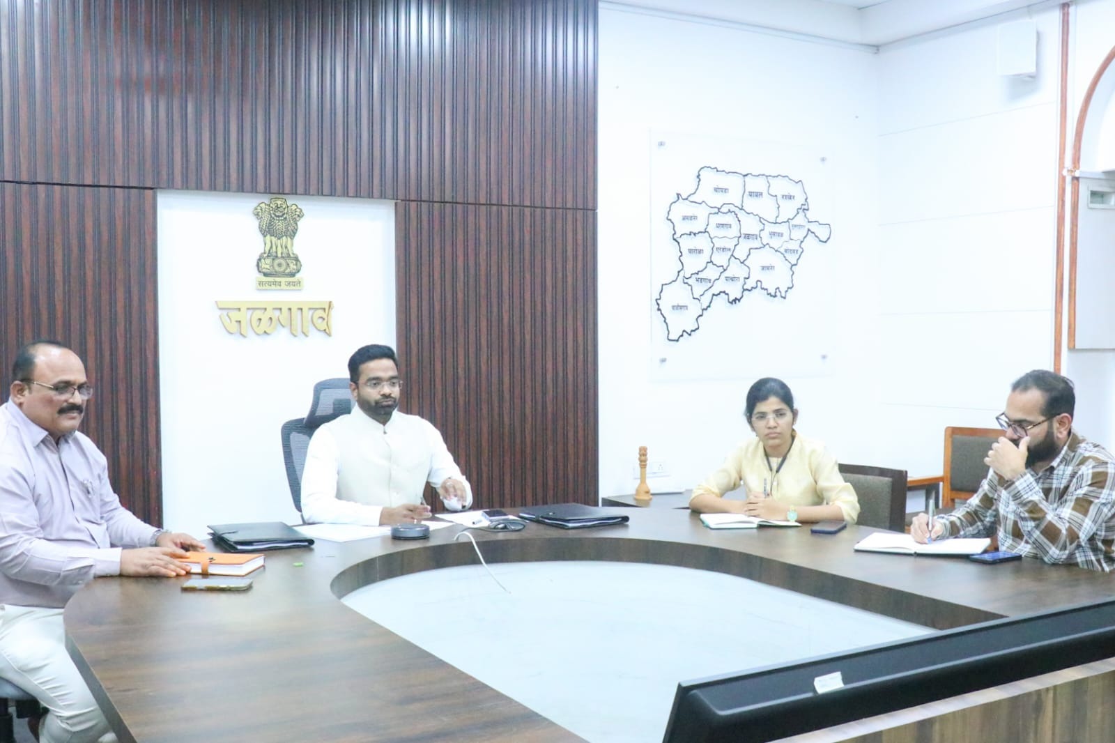 बैठकीदरम्यान निवडणूक कालावधीत कायदा व सुव्यवस्था अबाधित राखणे, प्रतिबंधात्मक उपाययोजना, मतदान व मतमोजणी प्रक्रियेदरम्यान आवश्यक सुरक्षा व्यवस्था, विविध यंत्रणांमधील समन्वय तसेच तत्काळ प्रतिसाद यंत्रणा याबाबत सविस्तर चर्चा करण्यात आली. यावेळी संबंधित विभाग प्रमुखांना आवश्यक व स्पष्ट निर्देश देण्यात आले.या बैठकीस पोलीस अधीक्षक डॉ महेश्वर रेड्डी, जळगाव शहर महानगरपालिका आयुक्त ज्ञानेश्वर ढेरे, अपर पोलीस अधीक्षक अशोक नखाते, उप जिल्हा निवडणूक अधिकारी अर्चना मोरे, उप विभागीय अधिकारी विनय गोसावी आदी अधिकारी उपस्थित होते.