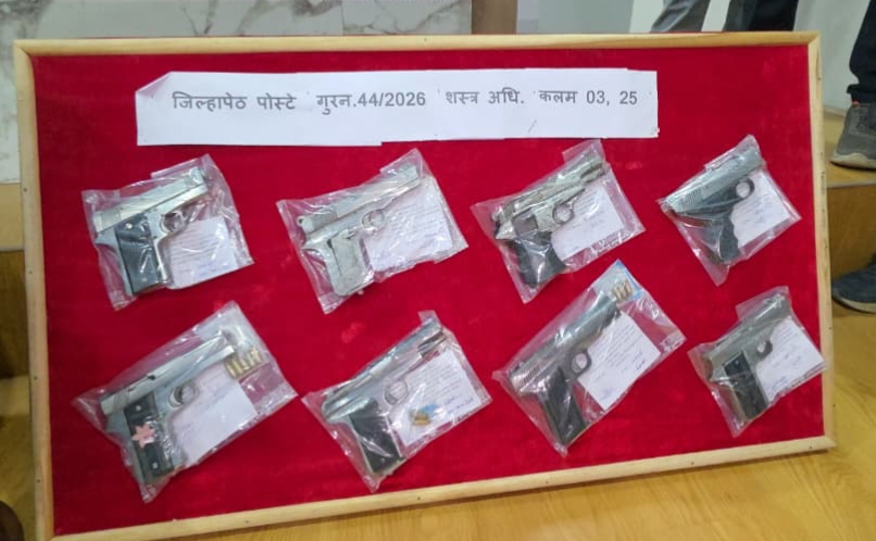 8 गावठी कट्ट्यांसह १० जिवंत काडतुस जप्त : जिल्हापेठ पोलिसांची कारवाई..