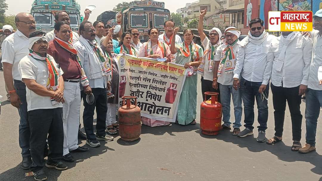 राष्ट्रवादी काँग्रेस पार्टी शरदचंद्र पवार पक्षातर्फे गॅस दरवाढी निषेधार्थ रस्ता रोको..
